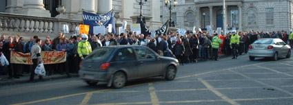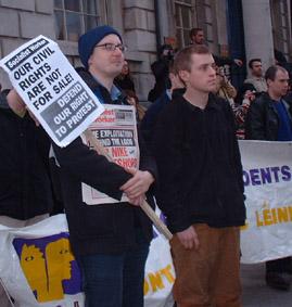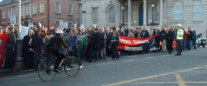 Some 300 to 400 people attended the demonstration (a typical council protest attracts 20-30). These included political groups like the anarchist Workers Solidarity Movement, various Leninist's including the SWP, Socialist Party and Workers Party, mainstream parties like Sinn Féin, the Greens and Labour, campaigning groups like Residents against Racism, and others who didn't have banners or placards to identify them by and student unions. There were also large numbers of people who aren't connected with any group but who were outraged by the proposed by laws.
