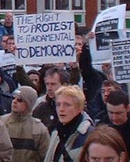 seperate picturesThis attempt to ban demonstrations from Dublin's main street was driven by the shopkeepers who have lined the street with junk food 'restaurants' and chain stores. They see demonstrations as "detrimental to the business life of the city" and obviously see the most important function of a city centre as selling burgers and sweatshop produced 'sports wear'. The rules above would still allow them to organise events if they wished to promote business and of course unlike the average activist group they could find the money required, as they'd expect to make money.