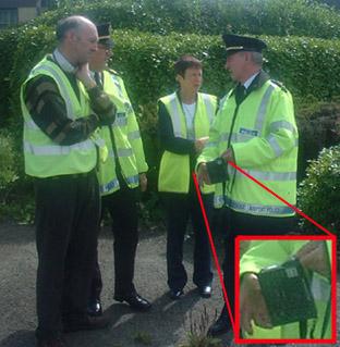 Meanwhile at the gate we were demanding to know under what power the Gardai were refusing us access to the airport. The senior guard (a red tabbed inspector) told us that he was "concerned that there will be some sort of protest that will make the airport unsafe" and that "I have information that there was to be an effort today by this protest to damage the airport". When asked if there was a warplane currently at the airport he said he didn't know, but when asked specifically about the Hercules he admitted, "there might well be".