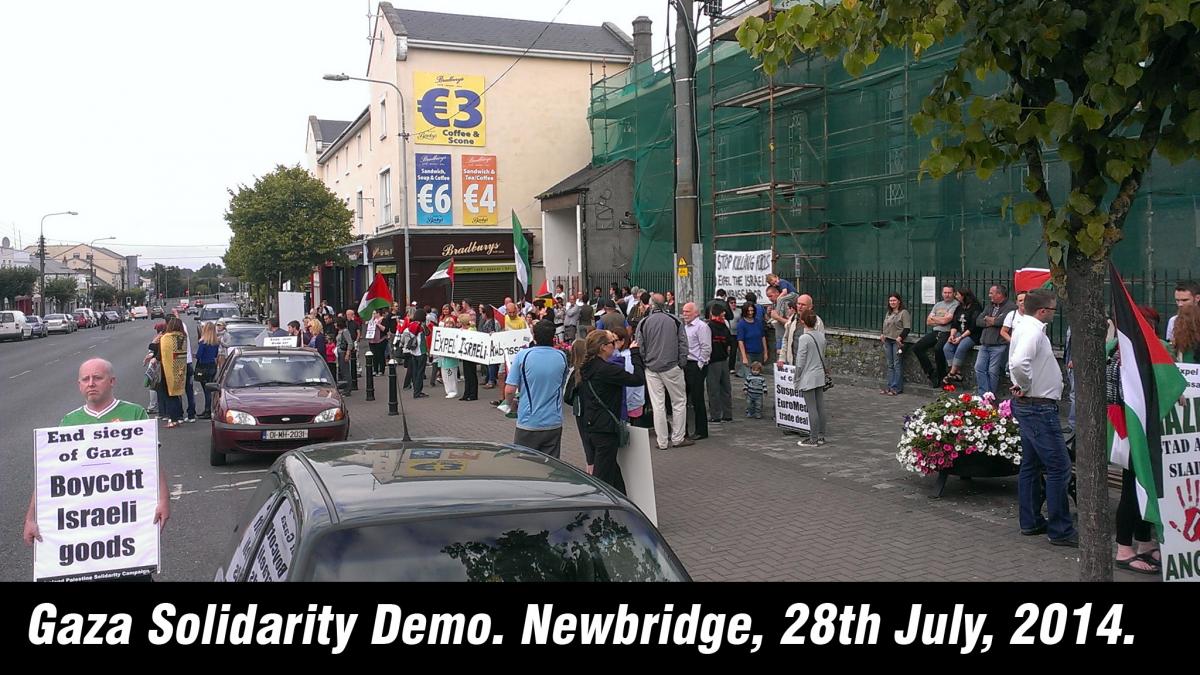 In response to the Israeli Defense Force’s (IDF) latest assault on the people of Gaza, well over 150 people came out for a Gaza solidarity demo in Newbridge on Monday evening. This follows on from a previous well attended demo that took place in Naas on July 21st. Supporters and friends of Palestine rallied in front of Newbridge town hall and many Palestinian flags and banners expressing solidarity with Gaza were on display. The demo was well attended by political activists including members of Sinn Fein, Community Solidarity, Workers Solidarity Movement and many more campaigners and councillors.