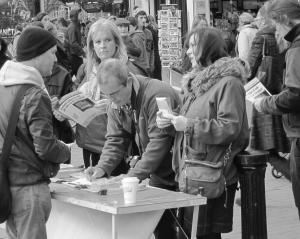 On Saturday members and supporters of Dublin Shell to Sea gathered the top of Grafton Street to distribute €540 billion ‘commemorative bank notes’ to members of the public, symbolising the cost to the exchequer of the extraordinary giveaway of Ireland’s oil and gas reserves. This was part of a national Shell to Sea day that saw leafletting in 8 other towns and cities around Ireland as well as Dublin.