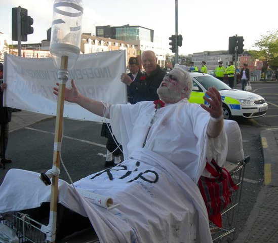 staunch protestors, died early on Wednesday morning at Marymount Hospice in Cork. He was suffering from cancer and had fought the illness bravely for the last number of years. Only last month, Pat attended the Winter Talk on Tadhg Barry at Solidarity Books. He enjoyed the meeting, he said, but complained that he was very tired and finding it hard to make it through each day.