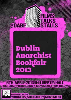 Hundreds of people from all over Ireland are expected to attend the 7th annual Dublin Anarchist Bookfair which takes place in Liberty Hall, Dublin on Saturday 26th May. The Bookfair, organised by the Workers Solidarity Movement, will consist of a day of meetings, debates, discussions and films and will also host bookstalls and information stands from a large number of political organisations and campaigning groups.