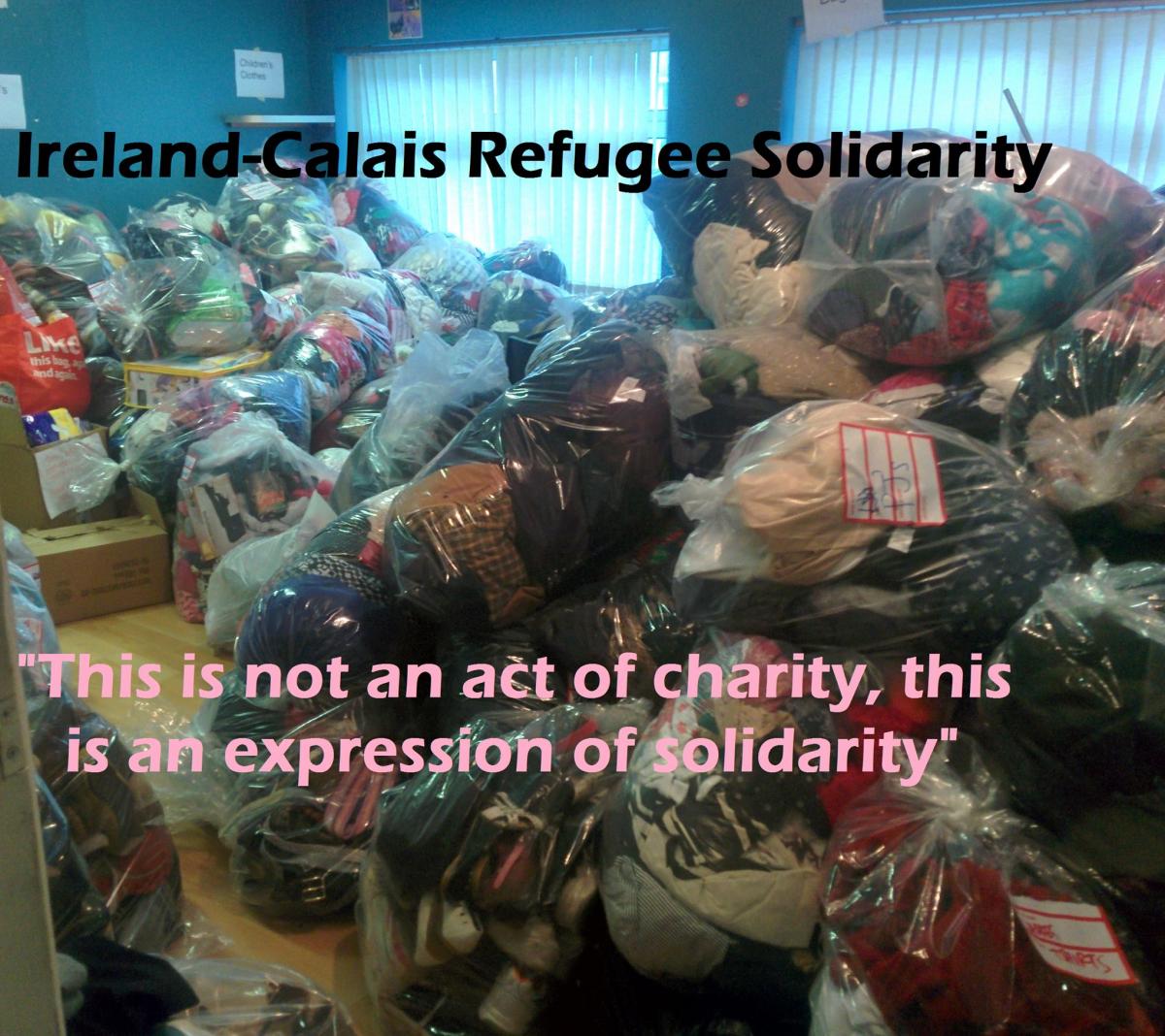 Today the first of Ireland-Calais Refugee Solidarity’s convoys of basic aid is due to arrive in the French port of Calais. The aid is for distribution among the several thousand refugees living in deplorable conditions in makeshift camps outside the town, hoping to gain entry into the UK.