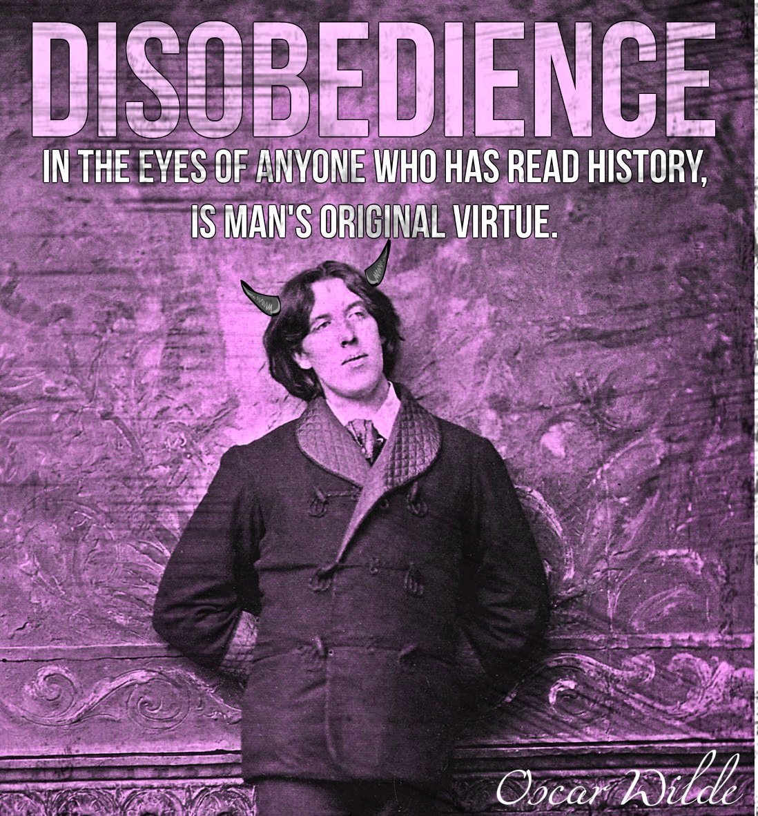 But as Wilde points out, a reading of history clearly shows that it has been disobedience, rebellion, and heresy, which have driven progress over the millennia. It seems almost too obvious to say, because the absence of resistance will obviously lead to nothing changing for the better.