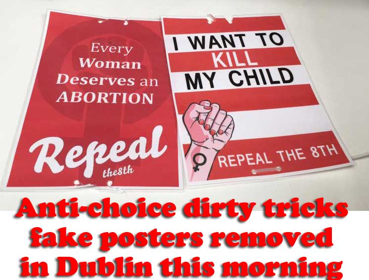 With the referendum not even definitively announced the anti-women bigots are already up to dirty tricks. This image of fake posters removed from Dublin's Pearse st this morning was tweeted by Sharon ✨ @sharmander_says a couple of hours ago. If you spot similar posters we suggest you remove them and message us a photo and the location and time they were spotted. We would also be very interested in any information on who put these up.
