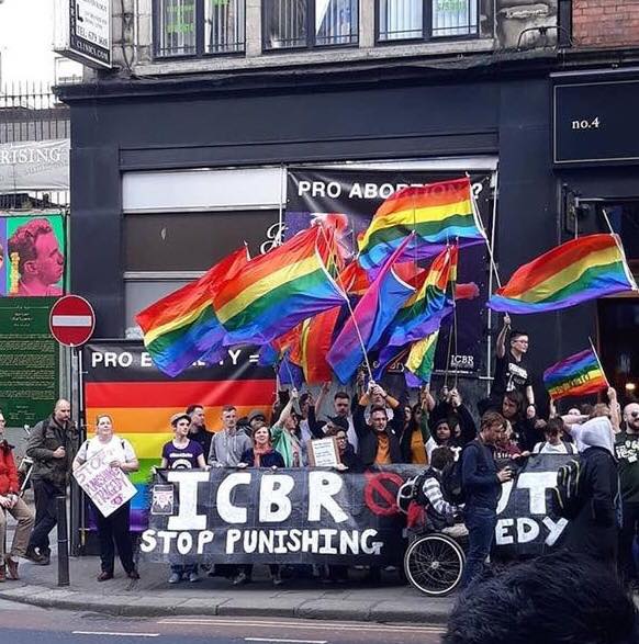 The afternoon of April 16th, outside Pantibar in Dublin, the so-called Irish Centre for Bioethical Reform staged an anti-abortion protest targeted at LGBT people in particular – planning to target well-known LGBTQ+ spaces Pantibar, Gay Community News, The George Bar, and Outhouse (LGBT community/resource centre), with a bespoke banner including a Pride rainbow flag.