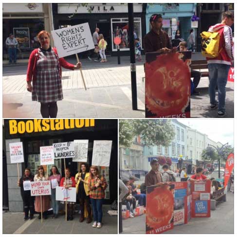 Saturday 22 July and Youth Defence, the real bottom of the barrel of the anti-choice campaign, brought their roadshow to Kilkenny. They have embarrassing historical ties with neo-nazis and plenty of shady American dollars to pay for their slick corporate stall, glossy flyers and huge banners, mostly featuring mangled foetuses and scare tactic slogans.