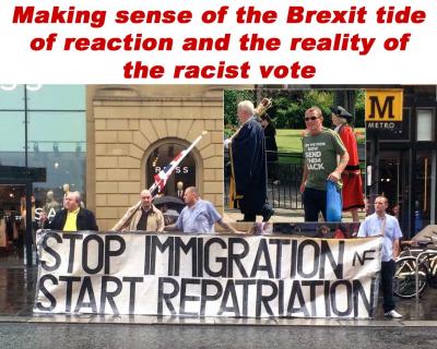 Some on the left have seized on the makeup of this core vote to suggest that there was some progressive element to the Brexit vote despite the campaign being led by racist hatemongers and wealthy US-oriented neoliberals. Mostly that’s a mixture of wishful thinking and post hoc justification for having called for a Leave vote in the first place, but it is true that a section of the working class, C2DEs in marketing speak, voted to Leave in close to a 2:1 ratio. Is the class composition of that vote enough to automatically make it progressive regardless of content? And what does it tell us that a section of the radical left seems to think the answer to that question is yes, that it is enough to be anti-establishment?