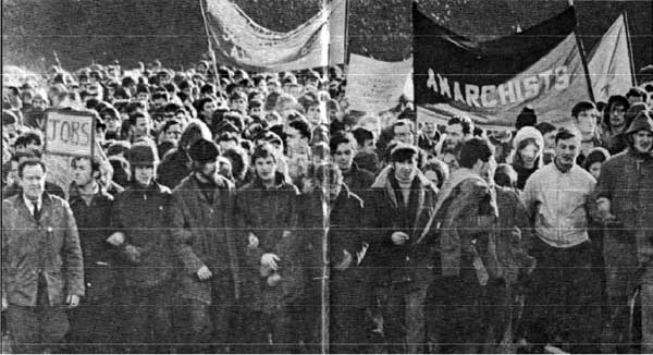 Since about 1971, the BAG had been meeting irregularly, and some members had even drifted away or been subsumed into PD activism. Differences of opinion with regard to the armed campaign of the IRA had also started to emerge. The break finally came in 1973, when police in London alleged that local anarchists were aiding the IRA. A BAG meeting of about a dozen members or so got together and decided to draft a statement and send it to all the local papers refuting this. It read: ‘the Belfast Anarchist Group refutes accusations from the English police that the Provisional IRA are being aided by Anarchist Groups. Anarchist groups, both here and in Britain, have continuously refused to support any group that hasn’t the interests of the ordinary people at heart, but instead keeps itself in existence through authoritarian means and nationalist ideology (whether Irish nationalists like the IRA or Ulster nationalists like the UDA). Anarchists support the struggle of ordinary people to control their own destiny, whether Protestant or Catholic, white or black. And while we realise that social and political conditions make the rise of such groups as the IRA and the UDA almost inevitable, nevertheless although these groups rise from the people they can’t be considered to be fighting for the people. The conditions that divide the working class are perpetuated by these groups through their inability or refusal to escape the trap of nationalism and sectarianism’.