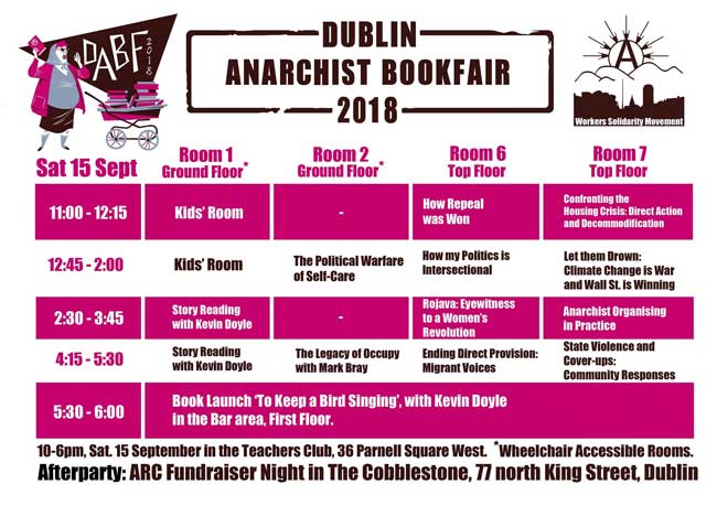 12th Dublin Anarchist Bookfair - 14th & 15th September 2018 - Teachers Club 35 Parnell sq & Wynns