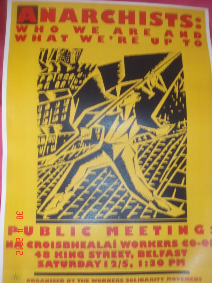 While the Belfast anarchist Bookfair remains an important and worthwhile event to promote our ideas and ‘movement’ beyond the sectarian divide. Lessons need to learnt from the bookfair in London and Dublin in terms of organisation and promotion such speakers that will actually draw a good crowd if we are to move from the margins to the mainstream.