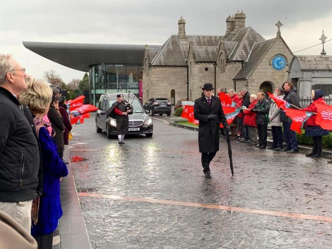 Alan passes through an honour guard from SIPTU, the union he was an activist in for many years