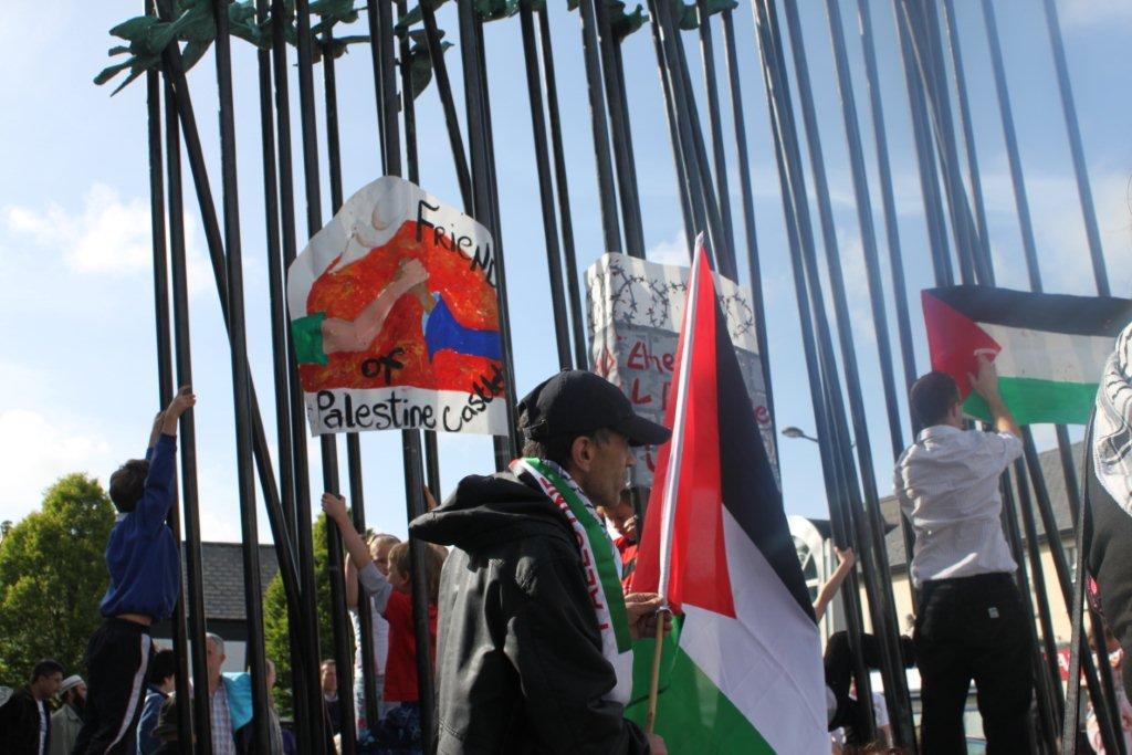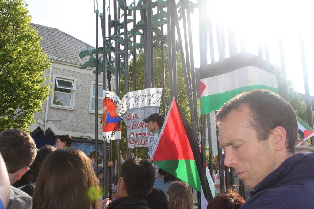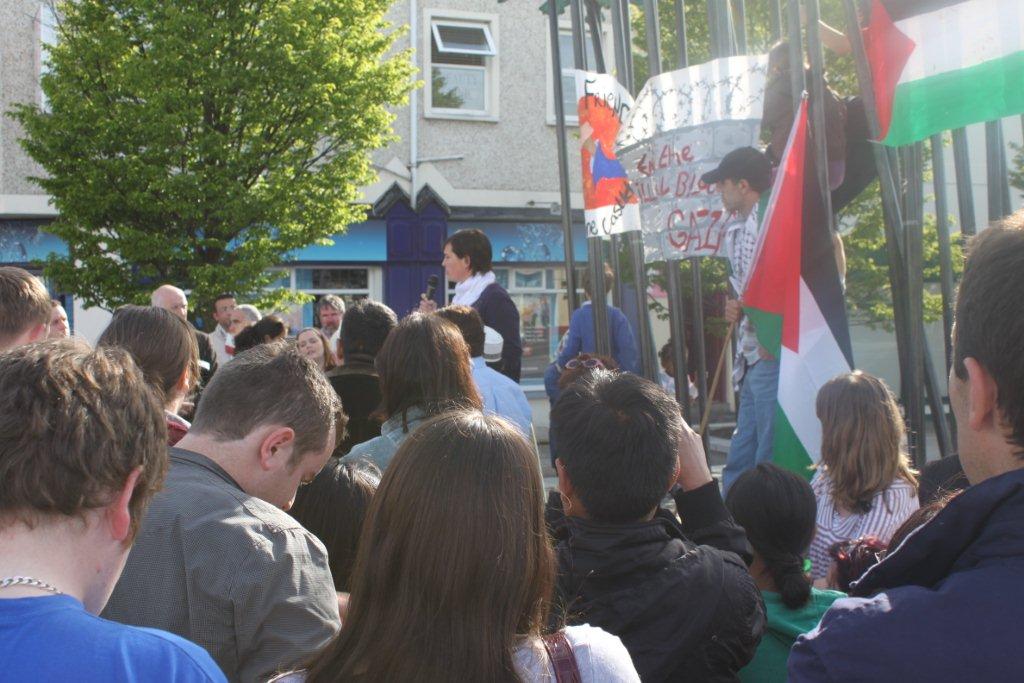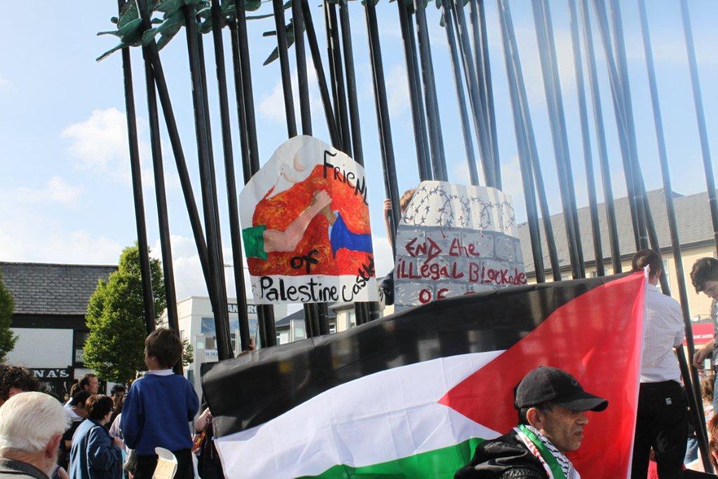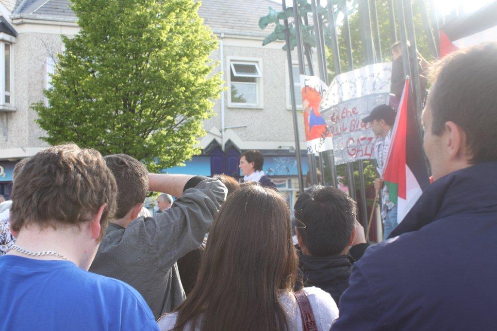 Almost one hundred Castlebar locals and members of local political groups including Workers Solidarity Movement took to the streets holding a vigil in solidarity with the people of Gaza and the activists murdered by IDF forces. A strong message of outrage at these atrocities and anger at the continuing siege of Gaza was relayed from speakers and the protesters. Calls for Boycott, Divestment and Sanctions against the Isreali state were prominent from those assembled. Further protests are planned throughout the Mayo area including plans for a Mayo Trade Boycott.