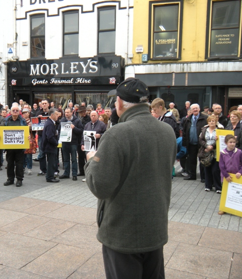 The message of Saturday’s mobilisation was about the need for all activists in the Campaign to spread the word about non-registration and about the injustice of the tax. People were urged to talk to family, neighbours and work colleagues and to convince them of the need to make a stand. It is more important than ever to convince people to get involved and become active in the campaign.