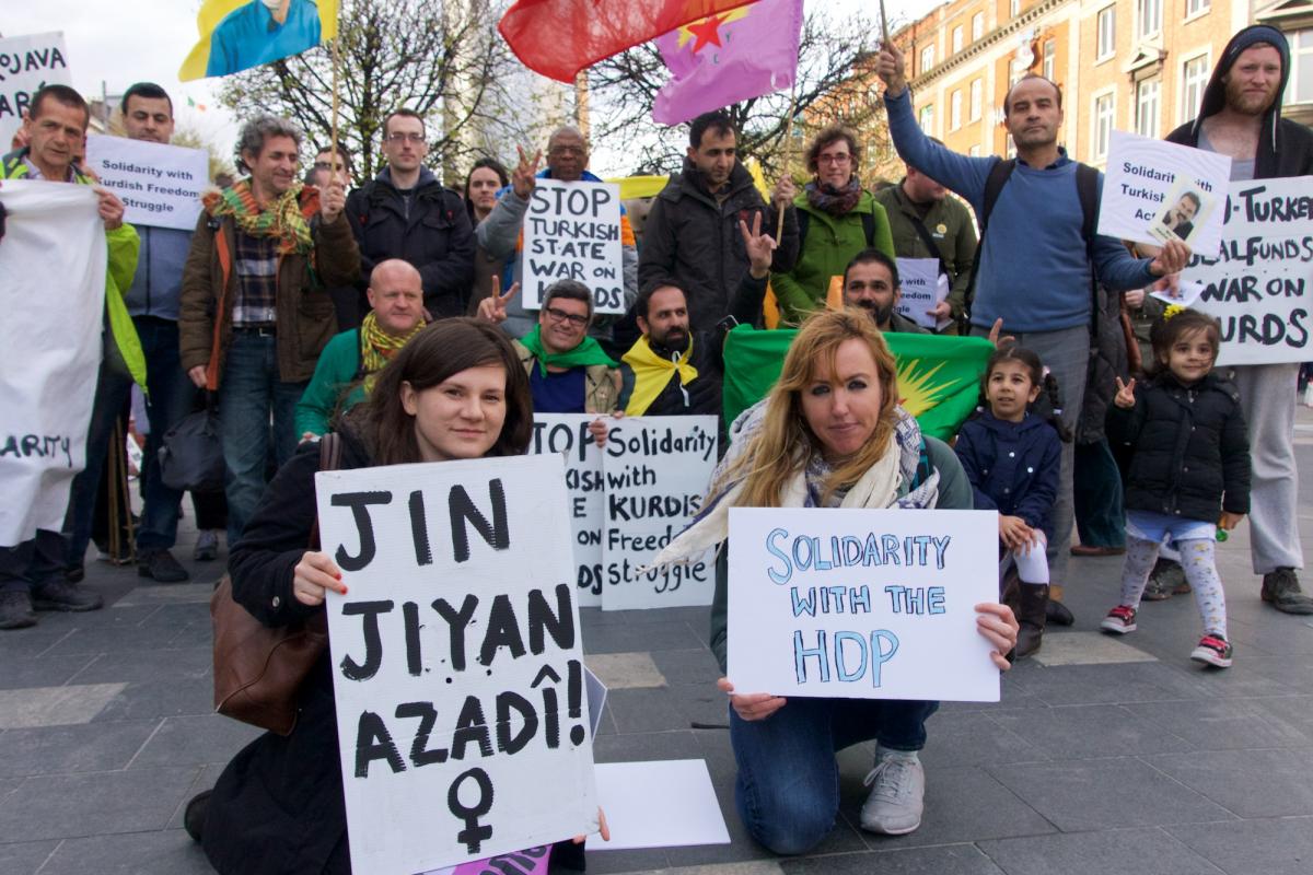 Dublin saw a day of protests in solidarity with the Kurdish Freedom struggle today. The video shows the protest at the GPO, site of the 1916 rebellion against British colonialism 100 years ago. During that rebellion British forces destroyed much of the center of Dublin and murdered civilians much as the Turkish state has been doing in Bakur (SE Turkey) over the last months.