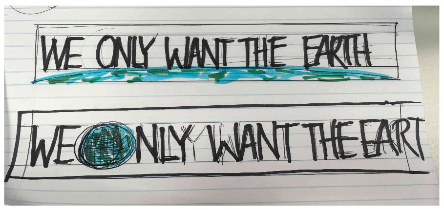 For the planet Earth, the brushes we had were really awkward. The next day the Earth was quickly finished off with a much smaller brush.