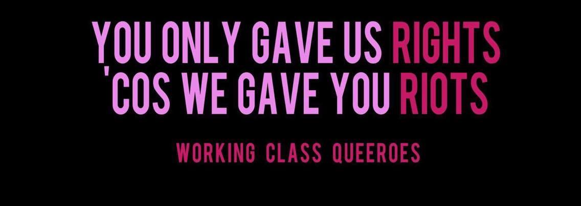 Here's the final Pride banner. Again, we were happy with how it turned out. Again, it was well received at Pride and on social media, and we got several compliments on both the slogan and the physical quality of the banner in person. The high quality added power to our message, which was that the reason queer people have taken a step forward is because we said 'fuck it' and disrupted the system oppressing us, rather than focusing on trying to make our oppressors feel comfortable about us and politely asking the government for help.