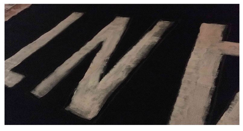 To make the banner we needed a plan of how we'd get the design onto the material. To do this, we asked a comrade who had made an excellent banner before for their method. So, we elected to hang the material on a wall and shine the design onto it using a projector. The next step is to trace the letters while it hangs up, and then when that's done take it down onto the floor and fill in those letters with paint until complete.