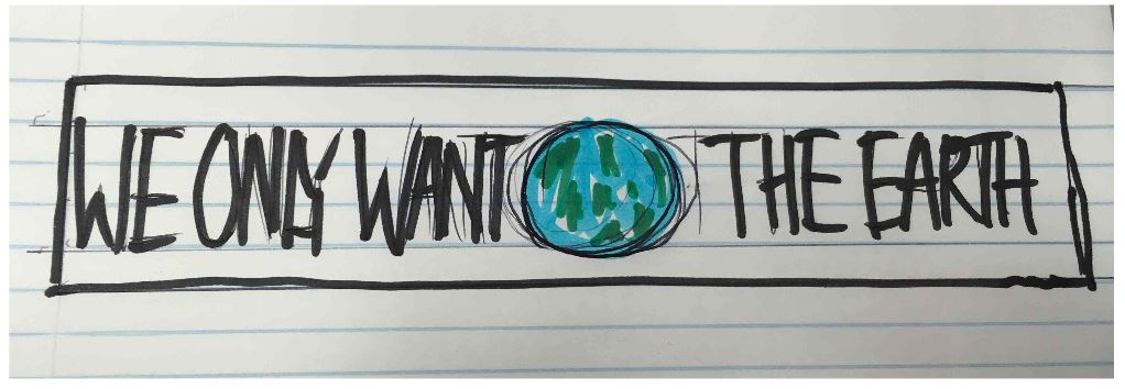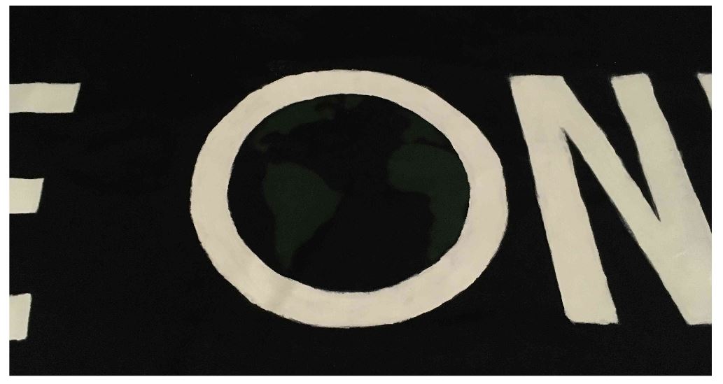 From this, a proper design which is shown below was created using Adobe Photoshop. This is needed so you can project the image onto the fabric. The Earth picture which sits inside the 'O' was found by searching for 'cartoon Earth' online. You don't have to use Photoshop. My favourite free online image editor is www.befunky.com. It's easy to use and is very good for text on images. But it doesn't let you place images onto other images (like the Earth here), which www.fotoflexer.com does but isn't as good for lettering.