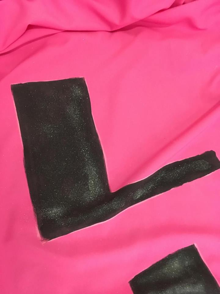 For the Pride banner, we couldn't move far enough away from the fabric taped to the wall to project the whole image onto the fabric at once. So we projected it in two stages. Make sure you know this will work before tracing. Also, make sure that when you move onto the next stage, the letters line up perfectly, or else you'll have a banner with wonky letters.