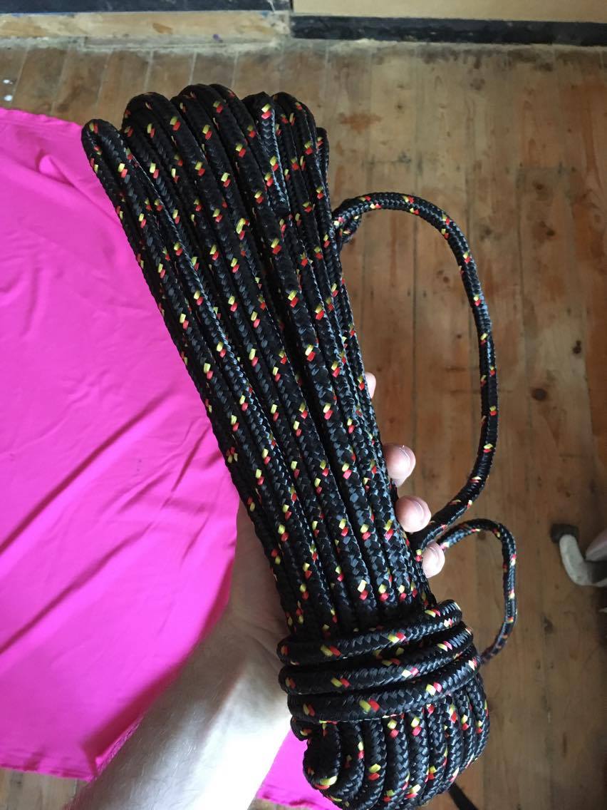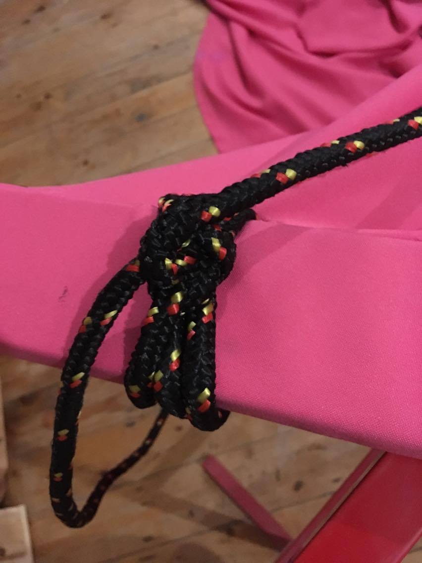 We tied these ropes off using a standard 'square knot', and doing another one on top of that again just to be sure, pulling the ends sticking out really tight for safety.