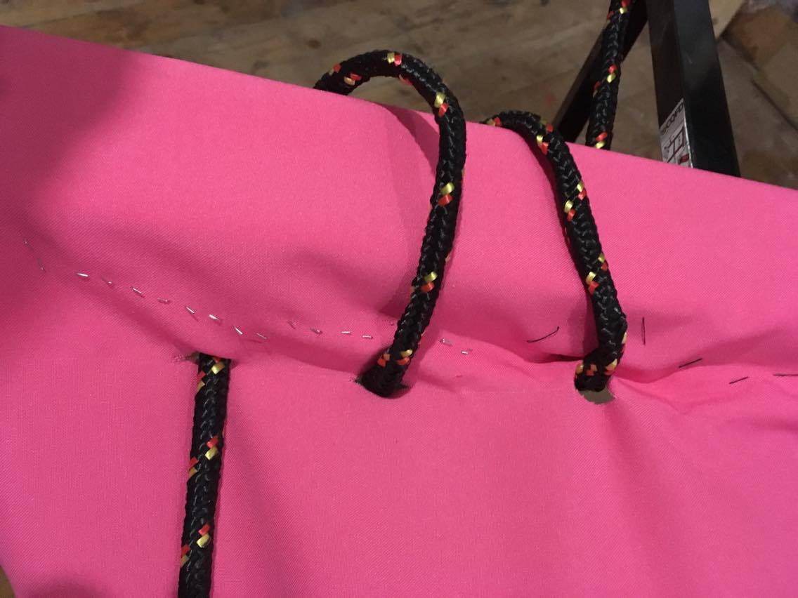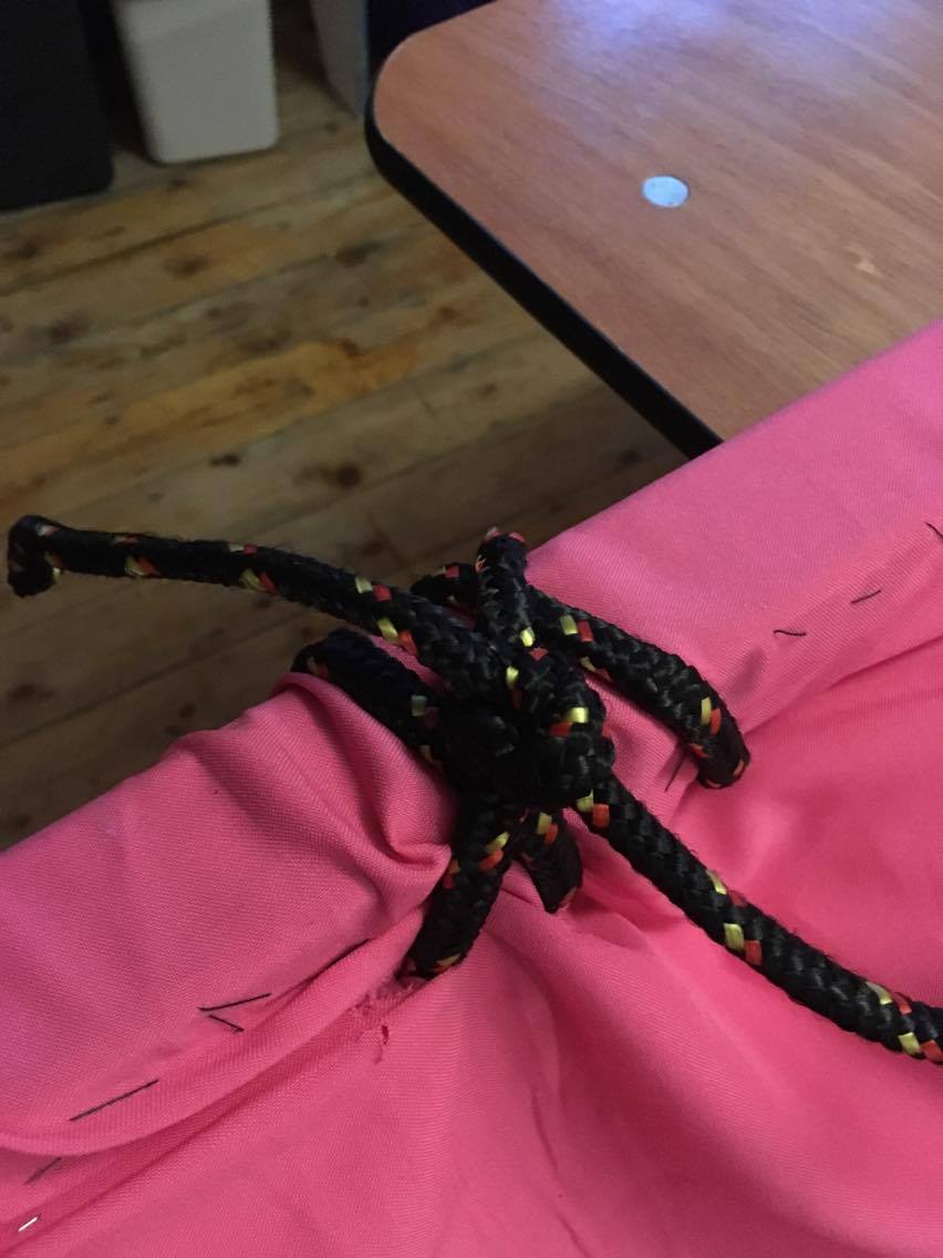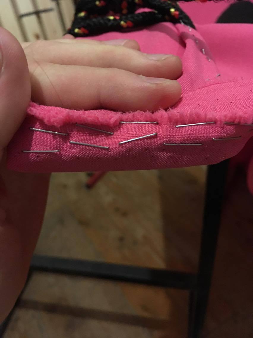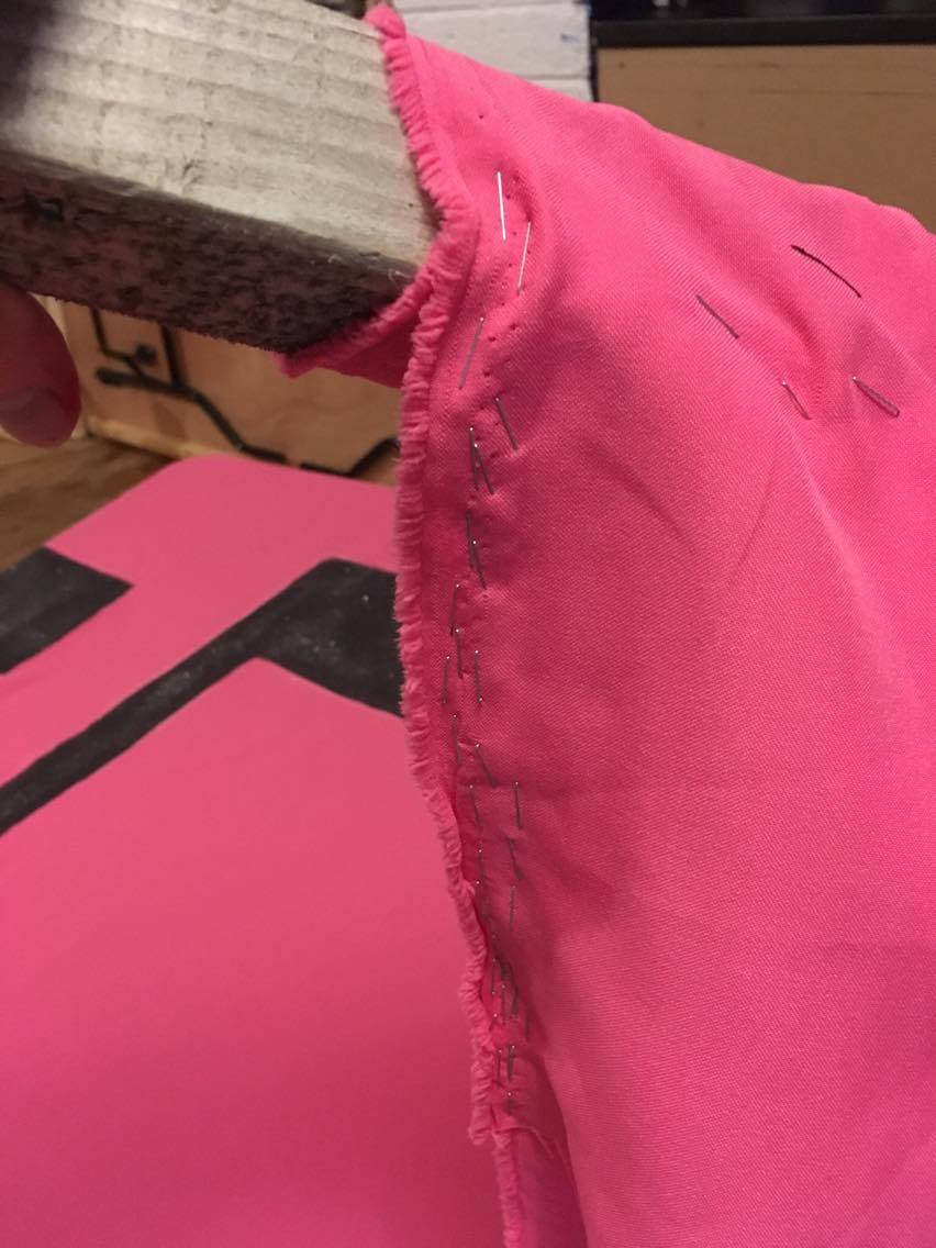Out of the two of us making these changes to the drop banner, only one could stitch, and wasn't very experienced. But they could do it well enough to get the job done.
