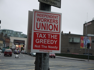 The slogans are "Tax the greedy not the needy", "Keep Water Free", " Healthcare free and equal", "Nationalise the gas" and "Maximum wage E100,000". The union is highlighting these demands to emphasis the point that despite the election there will be a continuing need for mobilising opposition tothe plans of government of whatever hue to make the working class pay for the crisis.