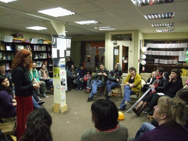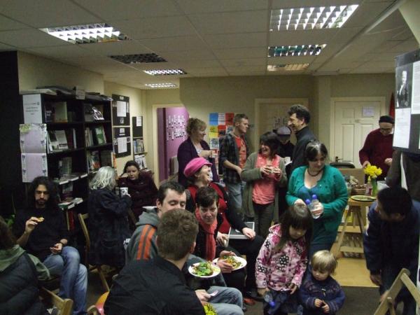 As has happened for the last two years, Solidarity Books and Cork WSM hosted an event on the 8th of March to celebrate International Women's Day. This year, Cork WSM members and other activists got together to put on an evening of food, film and discussion in the city's premier radical bookshop and meeting space. Meals were prepared on site and served by Veg Out! and Lentil Disorder, and was enjoyed by a multitude of women and men from the Cork activist scene and beyond. The food fuelled an hour or more of convivial chat, as people reminisced over previous celebrations and cast an eye over feminist-themed displays in various places about the shop space.