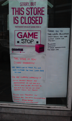 Workers of the games retailer GAME are continuing to occupy shuttered stores across the Republic of Ireland to protest at the unfair and disrespectful treatment by their former employers. The Workers Solidarity Movement fully support the workers in this direct-action. Here is an interview with the staff in Cork's Patrick Street store, Liam Duggan and Amanda.