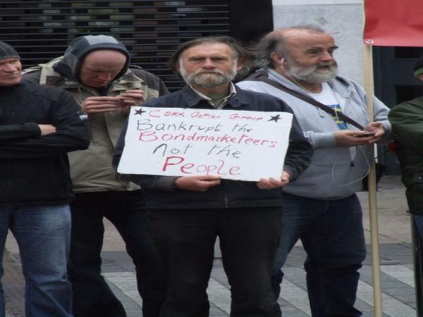 Up to 150 people marched behind the Independent Workers Union banner from the assembly point outside Connolly Hall on Lapp's Quay to the rally point at Daunt Square passing through Parnell Place, Merchant's Quay and Patrick Street. At the square, marchers were addressed by Dave Higgins of the Cork Social Welfare Defenders and by Noel Murphy, national secretary of the IWU. Mr. Higgins' speech reminded those present that the cuts to social welfare benefits perpetrated by the last government have not been reversed by the new government in power now, and that people signing on are being investigated for suspected benefit fraud like never before, while corrupt incompetent bankers whose shady activities brought low an economy make off with multi-million pensions. He praised the IWU for its recognition of the unemployed as workers deserving of union membership and called for joint action against the welfare cuts already applied, and those that are undoubtedly on the way from the Fine Gael/Labour government.