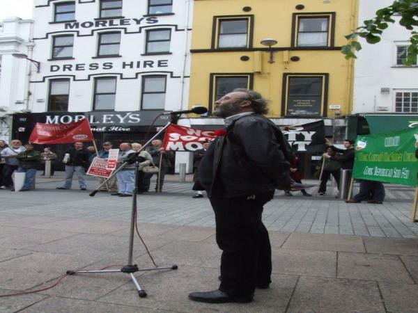 Today we must organise a refusal to pay Mortgages. Today we appeal to the silent majority, the many young couples, who can't afford the cost of the petrol to get to this rally, to co-ordinate a Refusal to Pay our Mortgages Policy until such time as the Government - resolves our Banking and Fiscal crises in the interests of the people. If required the Offices of the Independent Workers Union will be available for this purpose.