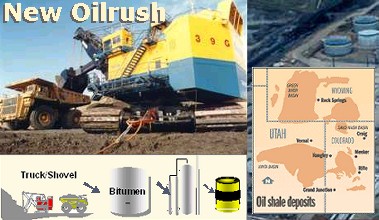 In addition to such conventional oil there are other sources, and the potential reserves in these are massive. They comprise oil that is very difficult to extract, typically because it is bound up in sand or shale deposits. Extracting this sort of oil is an operation more like open cast mining than conventional oil drilling. And the sand or shale extracted then has to be subjected to an energy intensive process to sweat the oil out. This currently gives EROEIs of up to 3(12). The largest deposits are in Venezuela and Canada, and these are already producing over a million barrels a day. It's estimated that these two deposits contain twice as much oil as all remaining conventional oil reserves, although only some of this is easily reached by strip mining.
