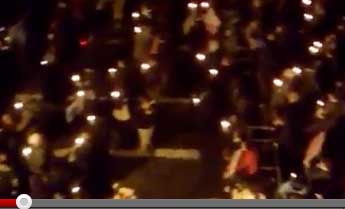 Step one was to grab frames from the video and then merge them into a whole using key indicators like the van. As you will be able to see I was a little generous in this step leaving overlap with the margins so some people will have got counted twice. I did two fram by frame passes, the first time anyone with a candle got a red dot dropped on the candle. This was the easy pass as the candles were distinct. Pass two was trickier, here I dropped a green dot onto anything that looked like it might be someone but who hadn't been dotted as a candle holder. There are probably rucksacks, dogs and parked bikes counted in there so again perhaps a bit of an overcount. (click on the images for a larger version).