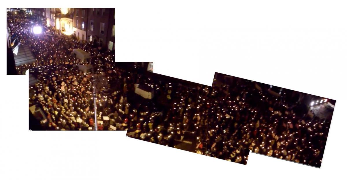 Every now and again something winds you up a little too much and you find yourself being a little obcessive in response. On hearing RTE had reported a daft figure of 8000 as attending tonights anti-choice rally this happened to me. It was very clear this was a massive overestimate but then how to produce an actual calculation of an event in the past. But then the anti-choice movement gave a hand and posted a video of the entire rally, shot it appears from the roof of Buswells.