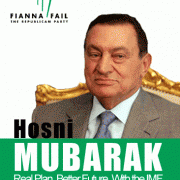 In fact since the end days loomed for this Government it appears that over 300 positions on State boards will have been appointed by the outgoing gang. This cronyism is one of the characteristics that is striking with the middle eastern dictatorships. So too are the calls for political reform. Reform is what everyone is about when they know you re exiting power. Mubarak promised it, Ghadaffi is promising it, Fianna Fail is promising it. Someone cleverly created a Mubarak poster for FF in North Central.