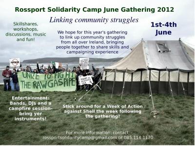 The seventh annual Rossport Solidarity Camp gathering is taking place in Erris, Co. Mayo from the 1st-4th June. You are invited to take part in workshops/discussions, skillshares, music and fun! We hope for this year's gathering to link up community struggles from all over Ireland, bringing people together to share skills and campaigning experiences.