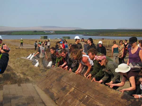 The May bank holiday saw the annual Rossport Solidarity Camp gathering, this year across the road from the new Shell compound at Arghoos in Erris. As has become traditional the gathering combined a direct action with workshops and socializing. On the Sunday most of those present went to the launch of fisherman's Pat O'Donnell's new boat. There was a constant Garda presence around the camp throughout the weekend but despite the destruction of some 60m of Shell's bog road no arrests were made.