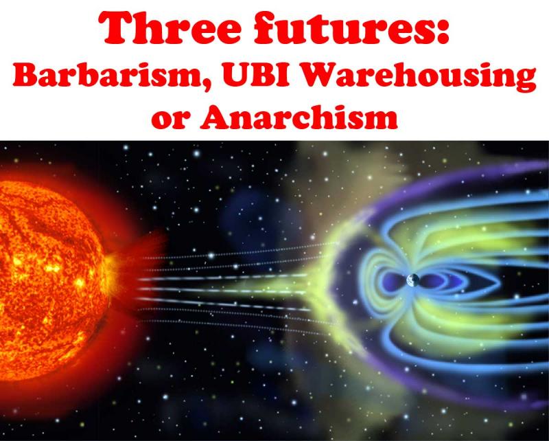 That third future is now more possible than ever before. We can produce enough to ensure all our needs, globally, are fulfilled and automation rather than being a threat can mean that we can end work. From the agricultural revolution on most of us have had to work long hours for the hoarders to survive and perhaps had little control over that work. Automation could mean that the hard graft of paid work vanishes to be replaced by work for pleasure. The difference between back breaking work in a field 10 hours a day harvesting potatoes and spending a few hours a week pottering around in your garden.