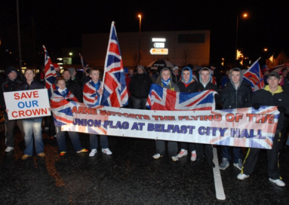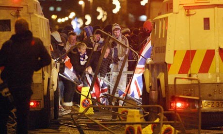 This recent wave of trouble kicked off several weeks ago following a vote taken by Belfast City Council to fly the union flag outside city hall on designated days only, instead of 365 days of the year. This was supposedly as a result of an earlier 'equality impact assessment' carried out on Belfast City Council. Minutes after the motion was passed, loyalist reaction to the decision was one of anger. As tension spilled out on to the streets several hundred union flag waving protesters laid siege to the building in scenes not witnessed here since the 1980's. As crowds were later dispersed, nearby nationalist homes and a catholic church bore the brunt of the mob's anger.