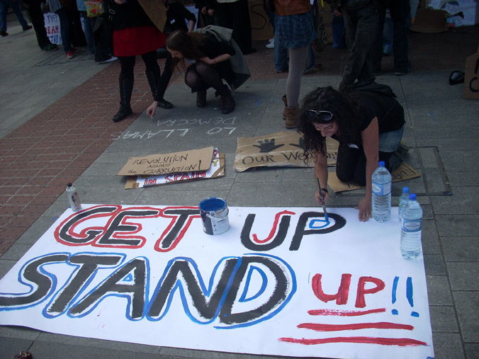 The solidarity group here plan to return to the Grand Parade every day this week to hand out information and discuss the events in Spain with passersby. This will be between 11am and 1pm, and from 6pm to 8pm. Come along and find out what's going on!