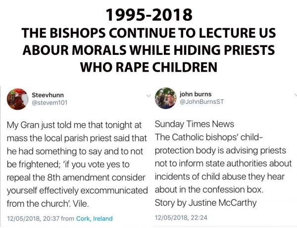In the years since 1983 it emerged that the same bishops had conspired to hide priests who had raped children, not just on one or two but on many occasions. Despite that this same group of supposedly celibate men still continue to bother us with lectures opposing sexual freedom, bodily autonomy and even same sex relationships. The same bishops still have de facto control over most of our schools and many of our hospitals and community centres.
