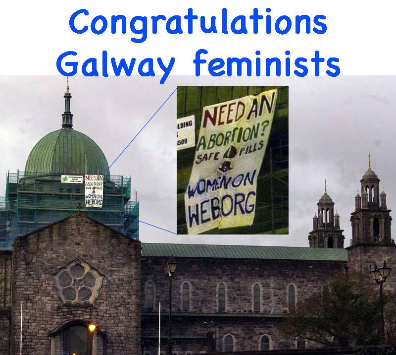 A few days ago the catholic bishops yet again dared to lecture people in Ireland with their statement against marriage equality. This morning Díobháil, a new Galway feminist group, has used Galway cathedral to speak out for and help the women trapped in unwanted pregnancies because of the bishops' role in another referendum, the 1983 anti choice referendum.