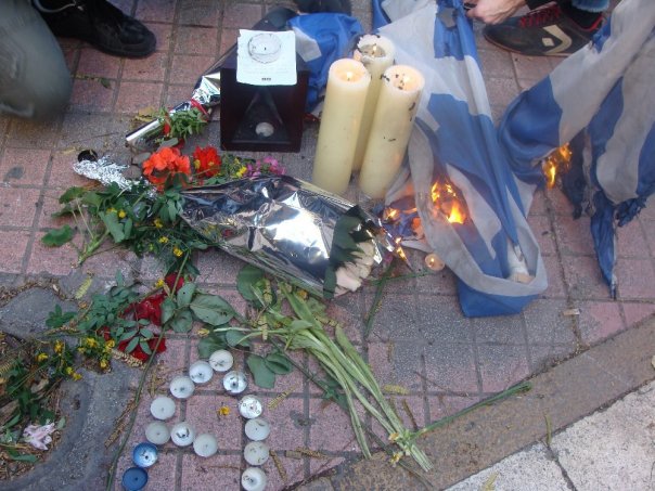 In memory of Alexandros Grigoropoulos, a 15 year old who was shot and killed by police in Athens on Saturday night. His death has provoked large scale protests, occupations and strikes all over Greece.