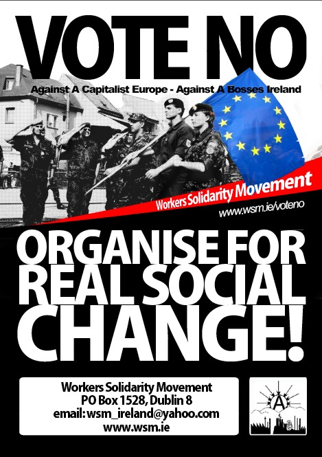 The Workers Solidarity Movement are printing and distributing 50,000 of the following leaflets in our campaign for a 'No' vote on the referendum on the Lisbon Treaty.