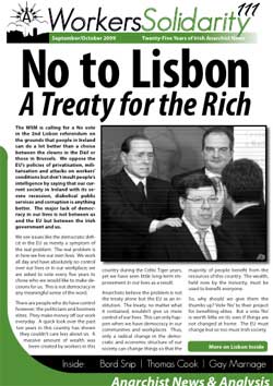 The Workers Solidarity Movement welcomes the rejection of the Lisbon Treaty. This treaty dealt with structural changes in the EU and as such no matter what it contained could not give us more control over our lives. This can only happen when we have democracy in our workplaces and communities.