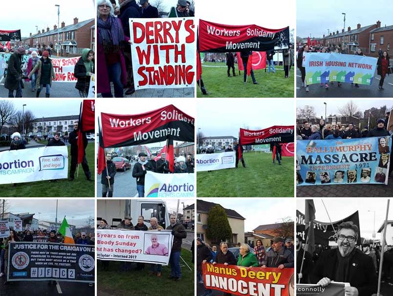 Several thousand people took part in todays annual Bloody Sunday March for Justice in Derry marking the 45th anniversary which made its way from the Creggan to Bogside along the original route of the initial Civil Rights demonstration in 1972 at which 14 unarmed innocent civilians were murdered by British Paratroopers.