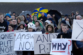 Several hundred people from both sides of the community gathered today despite arctic conditions outside Annie’s Bar, in Derry’s Waterside. They came together united in their outrage at last weeks brutal murder of local man Andrew Allen.