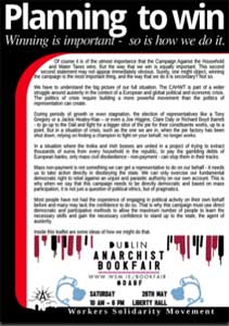 '2. We reject the idea that society can be changed through 'good people' gaining control of the power structures. This means we reject both the electoral strategy of the social democratic and green parties and the 'revolutionary' strategy of the various left groups.'