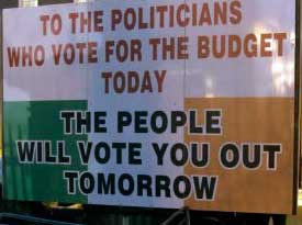 Fine Gael and the Labour party are engaged in a desperate attempt to pass the Fianna Fail/Green party budget into law. A budget containing billions in cuts attacking the poorest sections of Irish society. A budget they loudly opposed only a few weeks ago.
